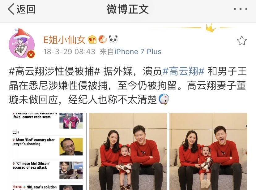 紧接着,高云翔在澳洲涉嫌“性侵”被捕,可以说是给剧方致命一击。