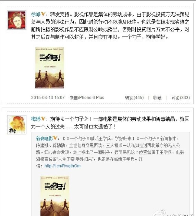 《一个勺子》当时被外界极力看好,可王学兵的事情一出,已经确定五一档的电影只好撤档,电影甚至面临无法上映的可能。