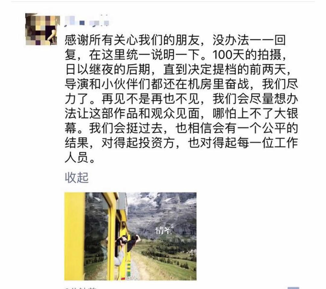本决定紧急提档的《情圣2》最后还是撤档了,投入的制作成本加上宣发费用损失惨重。