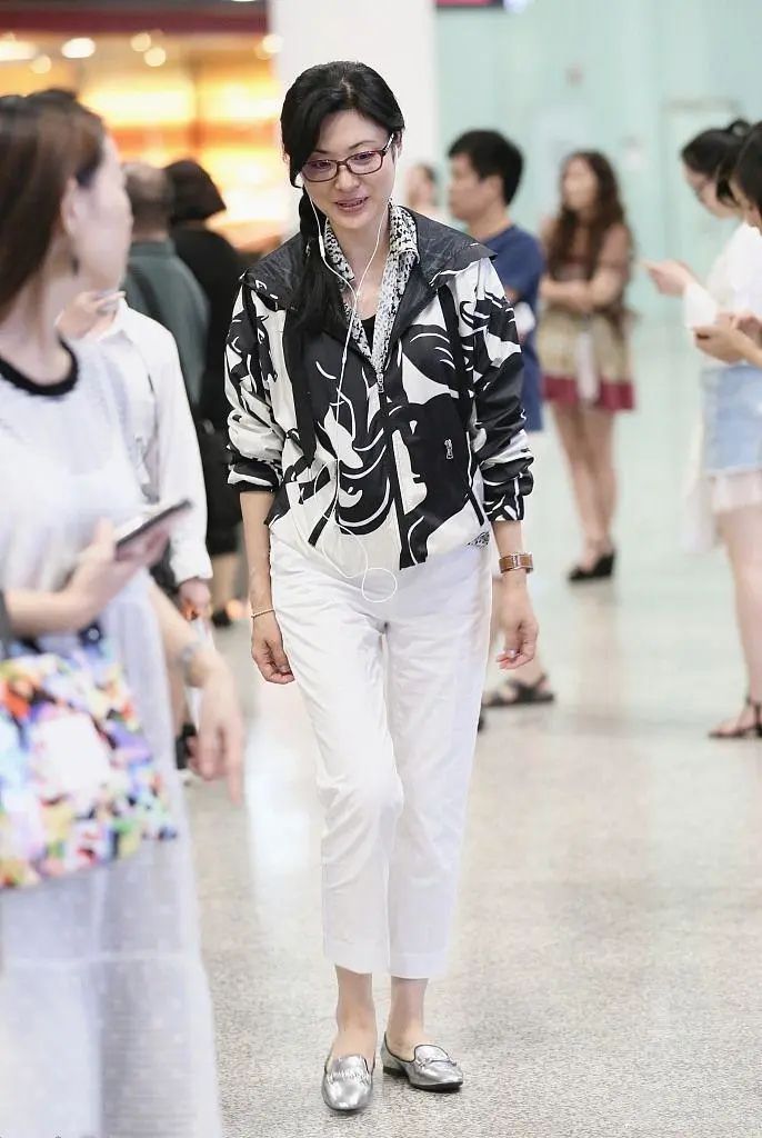 还是周涛的眼光就是好啊,上半身她穿的这一件外套可以说是特别的潮流。衣服上的图案也是很新颖。搭配白色的裤子真的是一个不错的选择,果然就算是一件普通的衣服,穿在周涛身上也会完全不一样。