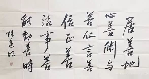虽然他选择了低调,但在美院专家的眼里却是认为他的书法是下笔流畅自信,而且用墨与提笔绝对是练过的,有着很高的文学修养。细看下面的作品,个人的特点非常突出,没有一惯的字正腔圆,但笔下却又是没有破坏传统书法字的结构,非常具有个人的魅力,可以说是一手好字。