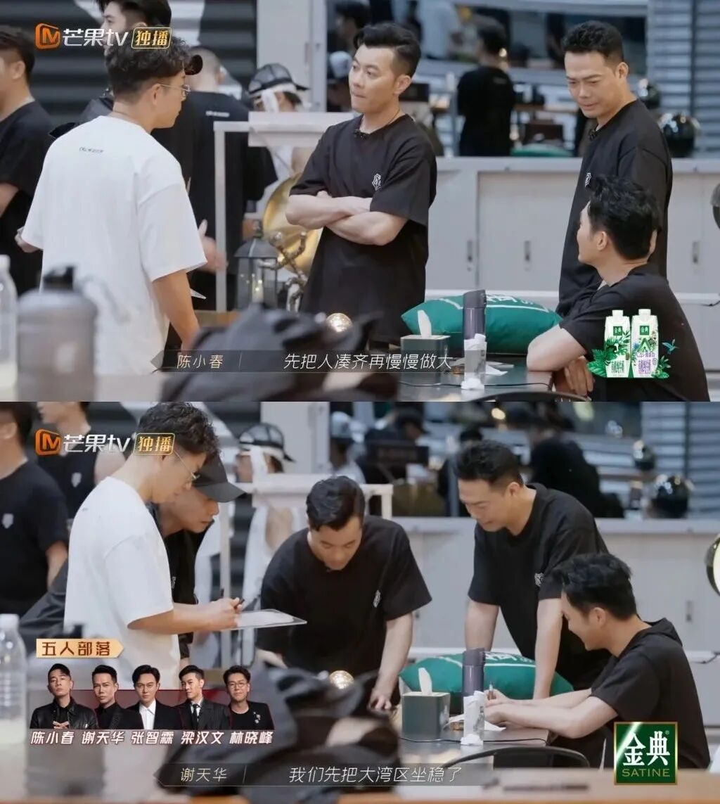 台上魅力十足,台下的陈小春也是节目的搞笑担当,第一次分组就想着要把”大湾区做大做强”,梦回”山鸡哥“