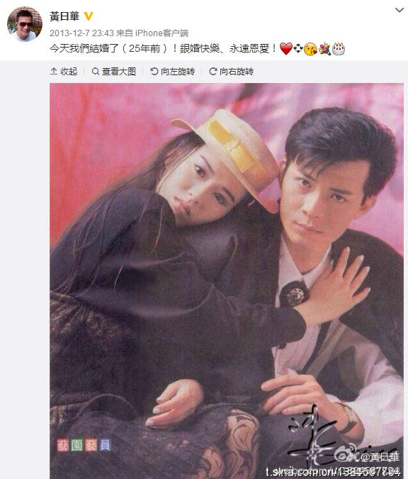 黄日华在微博上配上了二人年轻时的照片,很多人看了感动不已。