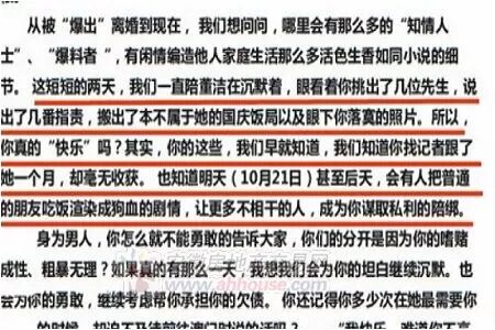 然而董洁在谈到潘粤明时,还是不停强调接受现实,却避谈对潘粤明造成的伤害。而之前离婚官司的道歉声明,至今是“未接受”状态。