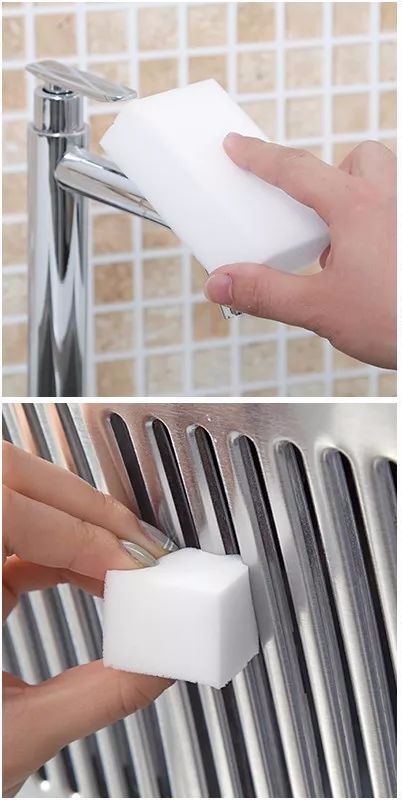 只需要沾点水,不需要洗衣粉、洗洁精等其他洗剂,在物体表面擦一擦,看~像新的一样,还不伤手哟~