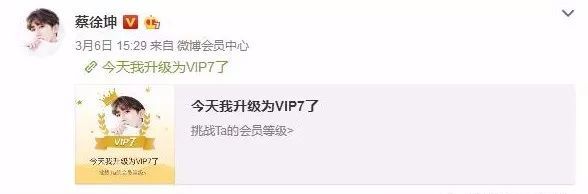 于是粉丝给蔡徐坤的微博充值了70年的会员(微博会员升级时将自动发送一条系统微博),结果蔡徐坤设置了升级时无需自动发微博,急坏了一众粉丝。后来在粉丝的众志成城下蔡徐坤终于发出了第一条微博。
