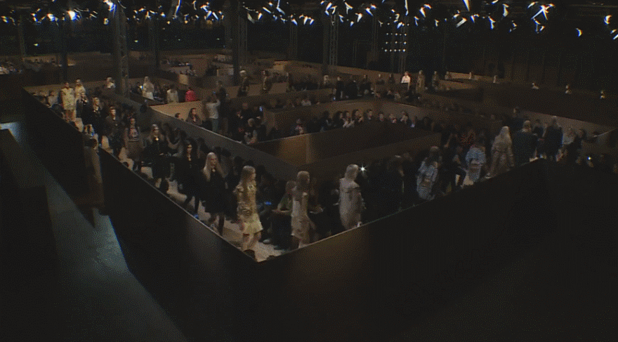 这次秀 Riccardo Tisci融合了街头与波西米亚风以及宗教的元素在其中。并在Le Carreau du Temple里,纪梵希建立了一个木制的迷宫式的长排座椅。