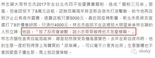 林志颖的大哥从2017年的时候就在台北摆摊卖肠粉,但因为受不了每个月8万元的店铺租金,在赔了百万之后便开始到夜市摆摊,因为没有店面,所以经常是要打游击战。