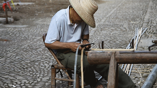 将竹篾细细密密织着…