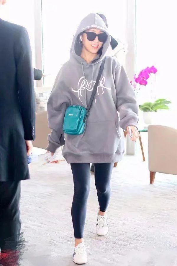 这样一件灰色的卫衣还挺好看的呢,而且特别宽松,下半身搭配一条黑色的紧身裤就会显得腿看起来特别的细的呀,因为衣服也是很宽松的呢。