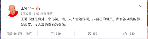 早一点的时候,所有时髦的,或者希望自己看上去时髦一些的自媒体都在聊一个可以让自己显得很时髦的话题——王菊。无数人宣布自己对这个互联网热点负责,有关无关的人一定要给你分析出一这个热点背后的原因甚至还要付费才能看他不着调分析,最不济的都也会在网上四处搜罗一下,整理一个王菊粉丝与众不同的“不争不吵改写饭圈规矩的佛系追星”事件簿出来,而此时,我正在被这些“不争不吵佛系追星”的人追着骂——当然我并不是因为被追着骂了一通就不看好王菊的,而恰恰是我不看好王菊导致了我被这群人骂。