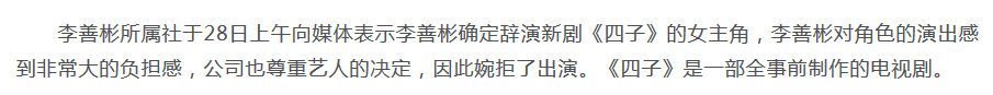 然而李先彬却表示…自己对《四子》的角色和故事内容产生了很大的负担,并不能胜任女主的角色。