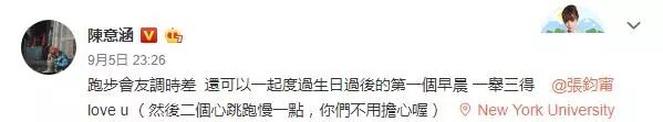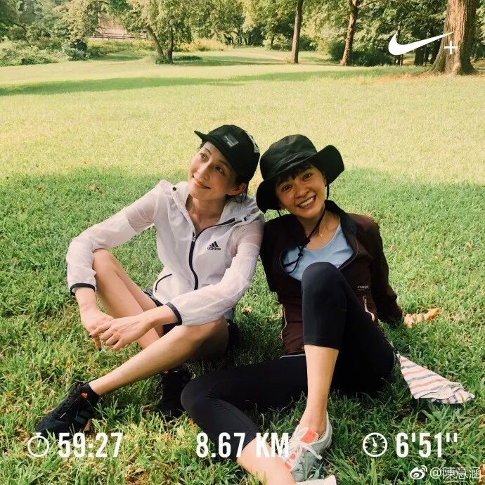 这次也不是网友们第一次提醒陈意涵跑得慢一点了,9月5日那天她晒了自己和好友张钧甯跑完步坐在草地上休息的照片,那次将近跑了九公里,她把这称为“跑步会友调时差”。