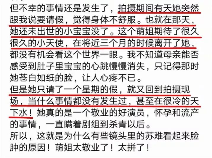 颖儿大出血差点小产,张萌入组后不久发现自己怀孕了,但为了不耽误剧组的工作,坚持在沙漠拍戏,不幸的是怀孕三个月的时候流产了……