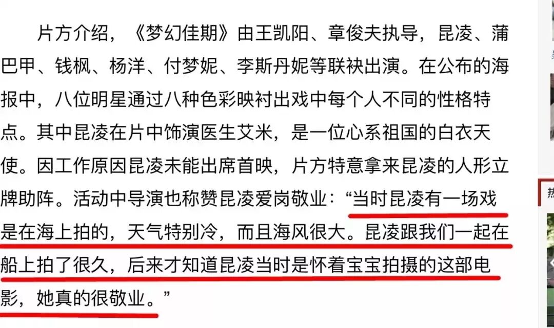 怀第一胎时在拍摄电影,导演是到电影拍摄杀青后才知道昆凌怀着孕。