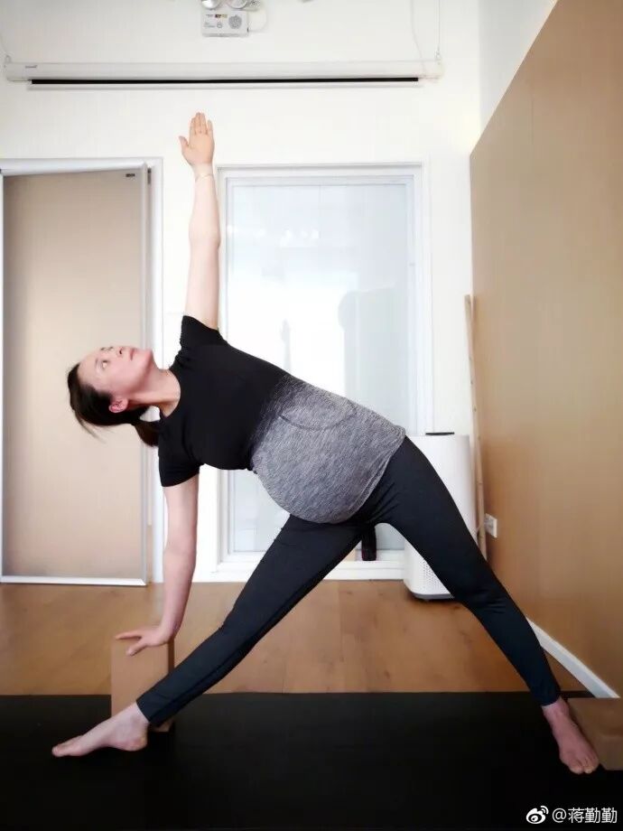 前段时间挺着大肚子和老公陈建斌录节目的蒋勤勤,48岁高龄怀二胎,怀孕期间也没少晒自己练瑜伽的照片,即便后来月数大了身子越来越重,蒋勤勤也坚持在练。