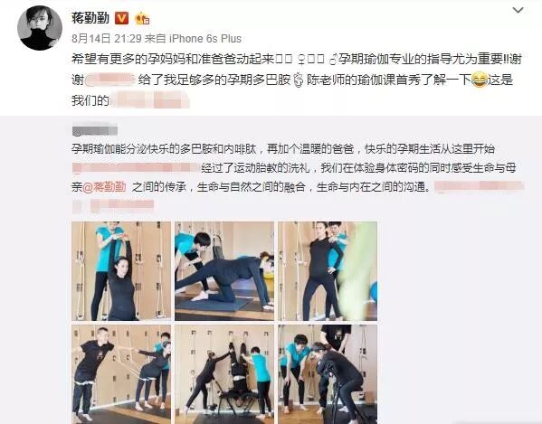 虽然倒立的动作看起来颇为惊险,但蒋勤勤的孕期瑜伽是在专业人员的指导下进行的,在生完孩子后,蒋勤勤还发了条微博呼吁准妈妈们和准爸爸们一起运动起来~