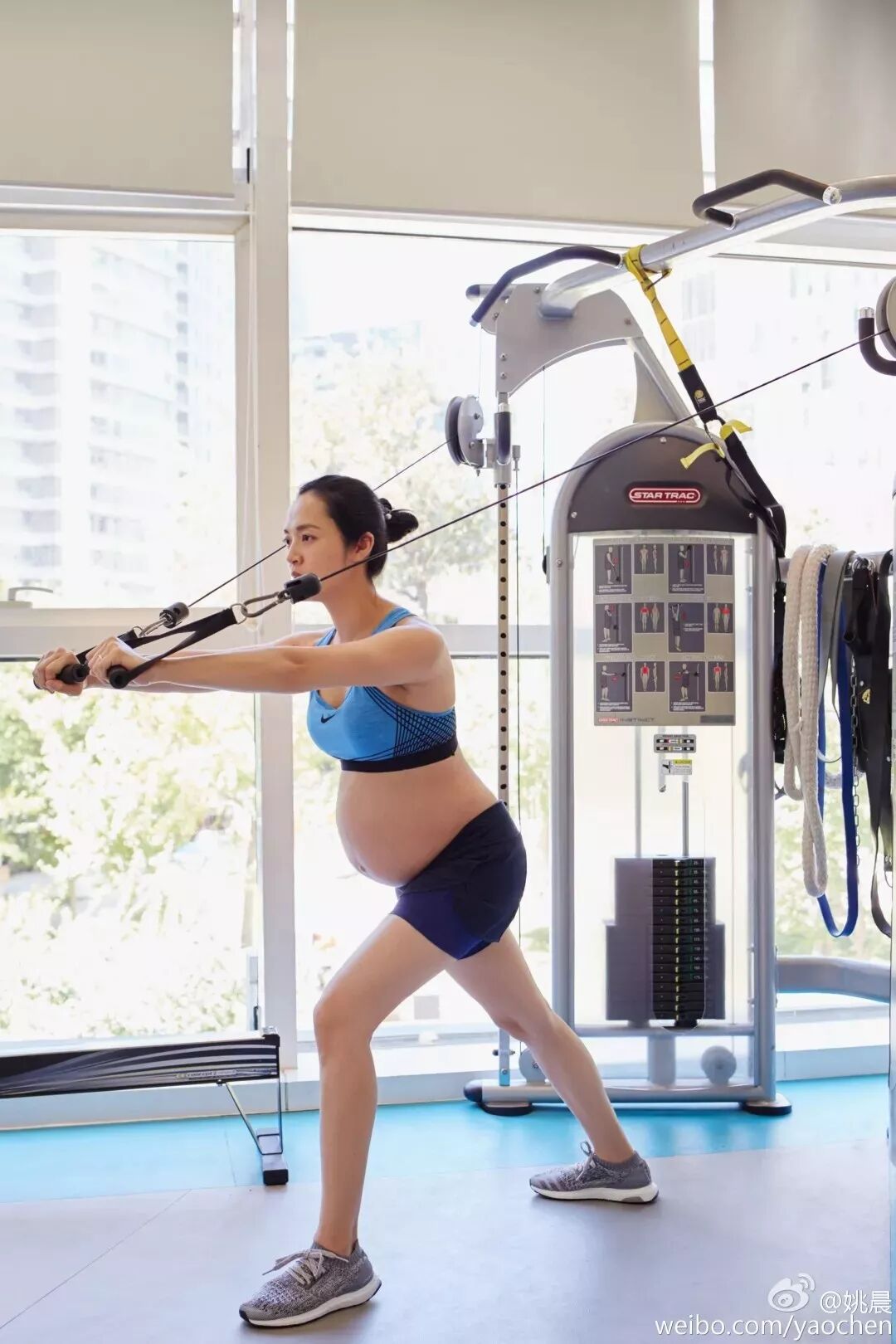 姚晨当时在怀二胎时也是保持着较高的运动量,同样也是多种运动方式替换着来训练,瑜伽、力量器械……