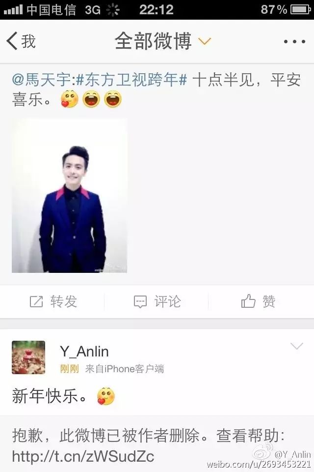 二爷可能是放错图片就删除了啦,其实羽毛们也见怪不怪啦,谁叫天宇有个绰号叫“马删删”呢