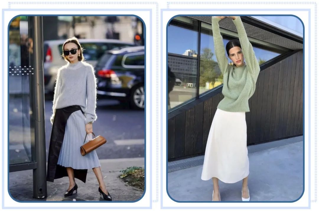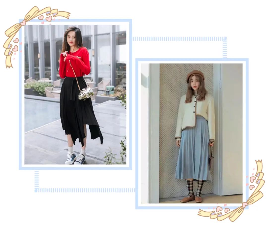 宜选:A字裙、开叉裙、中长伞裙、百褶裙、阔腿裤、烟管裤、男友裤