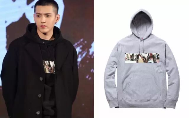 连帽外套是吴亦凡搭配中最常见的一个单品,为了丰富整体潮流感,他会选择购买一些话题性强的Photo Printed Hoodie。而这件正是Supreme为电影《Kids》20周年纪念推出的系列,衣服上的图案是参考电影中的片段设计而成。