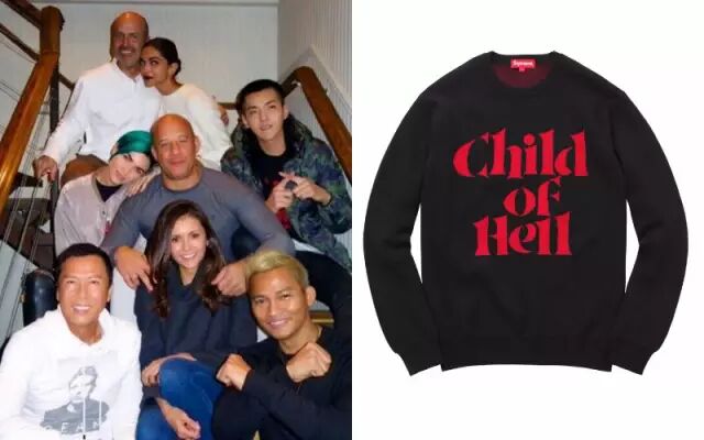在《极限特工3》的拍摄中,吴亦凡身穿2015AW "Child Of Hell"口号的长Tee.