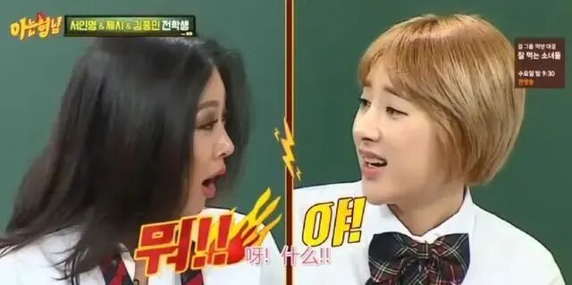南韩拽姐jessi,长着神似emoji的脸,却比谁都敢说,一出场就是不能播的尺度,从不搞虚假姐妹情,跟爱欺负后辈的徐仁英,一起录节目,她丝毫不怕,被问谁打架更厉害时,也是直接站出来不认输