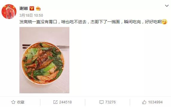 谢娜发高烧,什么也吃不下去,张杰想尽一切办法下了一碗面条,谢娜却感动到瞬间吃干净。