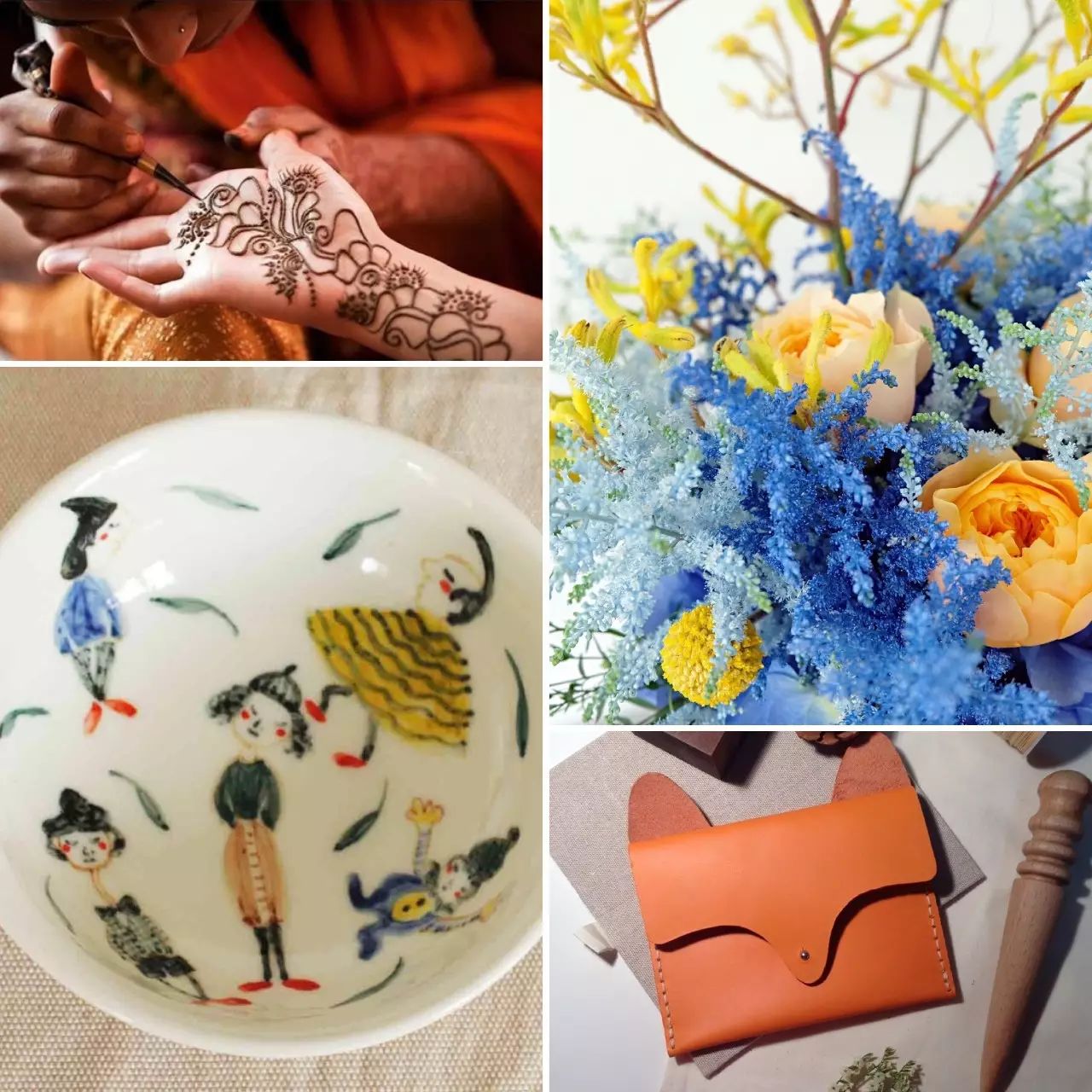 黄小厨noob市集为你提供了免费的手作体验。在市集,可以亲身体验手工皮具、芳香烛台、手绘装饰餐盘、海娜纹身,手工DIY马赛克琉璃小夜灯等。