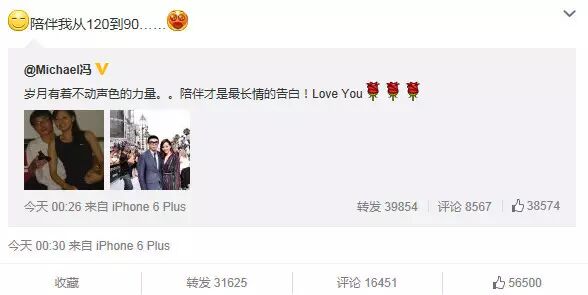 5日凌晨,冯轲在微博发文表白张靓颖:“岁月有着不动声色的力量。陪伴才是最长情的告白!LOVE YOU”。随后张靓颖转发微博回应:“陪伴我从120到90...”似乎是指体重的意思,令网友哭笑不得。