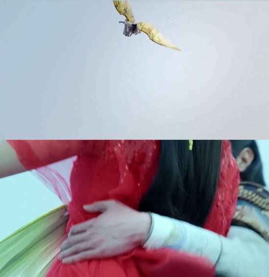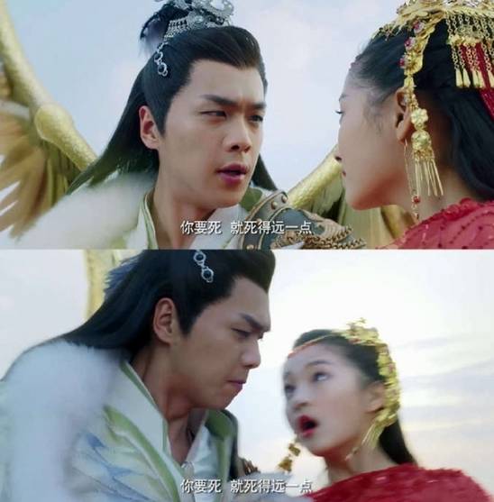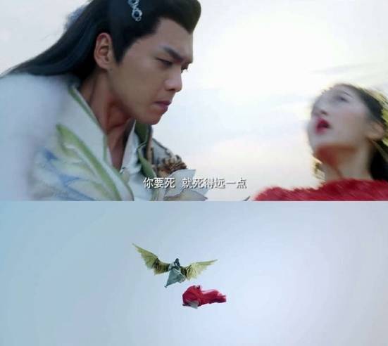 《九州天空城》里关晓彤饰演的易茯苓想要试探天逸对她的爱,于是纵身一跳,天逸果然将她抱在怀中:“我就知道。”