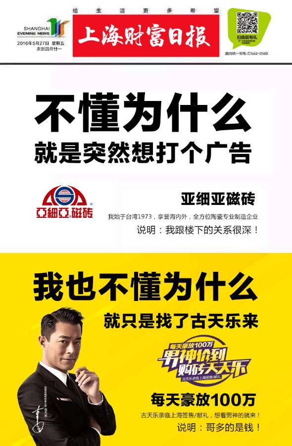 6月25日,男神价到。亚细亚磁砖携手古天乐,再度抢占上海滩!