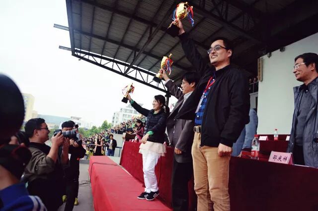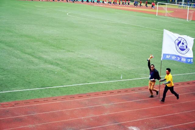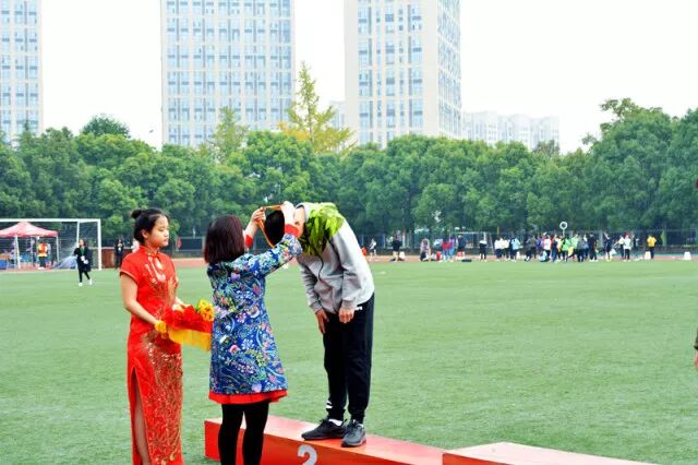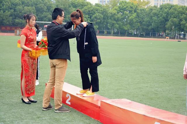 “在女子跳高的颁奖仪式上,我们财会金融学院总览前三名。”