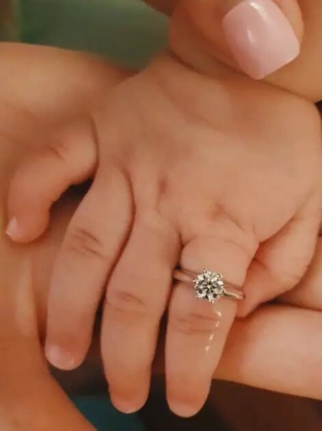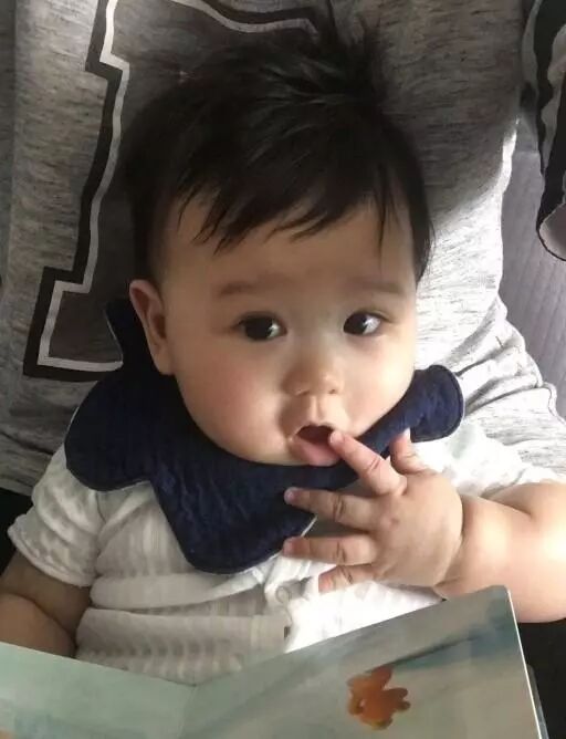 从胡杏儿晒出的照片中可以看到,儿子胖嘟嘟的小手上正戴着这枚钻戒,不过,只有十个月大的奕霆似乎并不懂得这个礼物的贵重之处,戴着戒指的那个手指上还留着他的口水,估计是把这枚钻戒当成吃的了。