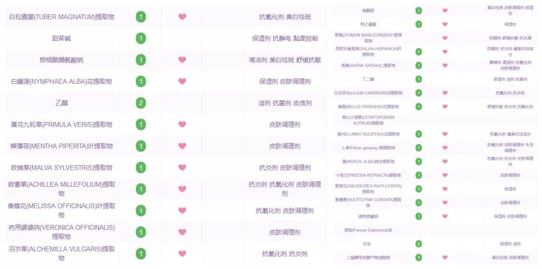 喷雾里面含有世界三大珍馐之一的“白松露”精华,源自意大利阿尔巴地区,出色的抗氧化,提亮肤色功效;还有2%的烟酰胺,国际公认美白成分。