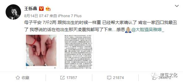 8月14日,是娱乐圈值得庆贺的一天,王栎鑫老婆二胎生子,此前已得爱女的他一子一女凑成“好”字,正式升级为人生赢家,幸福的奶爸王栎鑫也及时在微博发文,与粉丝分享喜悦。