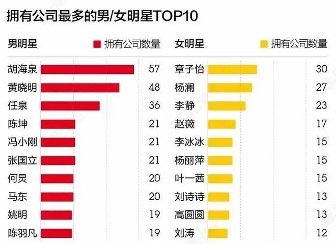 根据相关的统计,如今跟胡海泉相关的公司多达57个,超过了黄晓明。