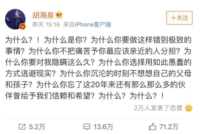 他的隔空质问回应,一连串的十万个为什么,反倒是把吃瓜群众问蒙了。