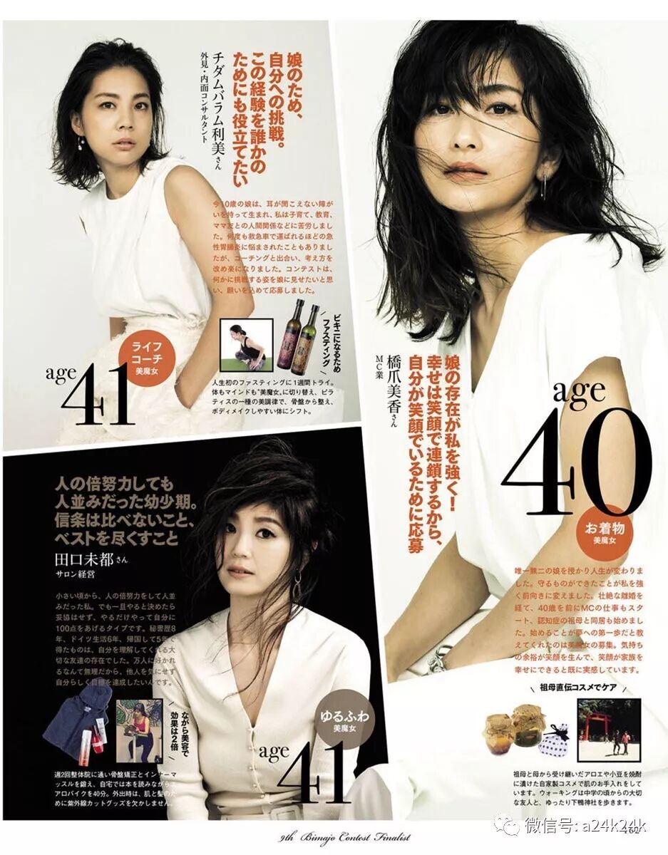 对了,还记得日本每年一度最有名的美魔女比赛嘛,每年被美魔女带红的护肤产品各有一堆,今年的参赛造型图出来了,绝地看不出是年龄,人啊还是要打扮。