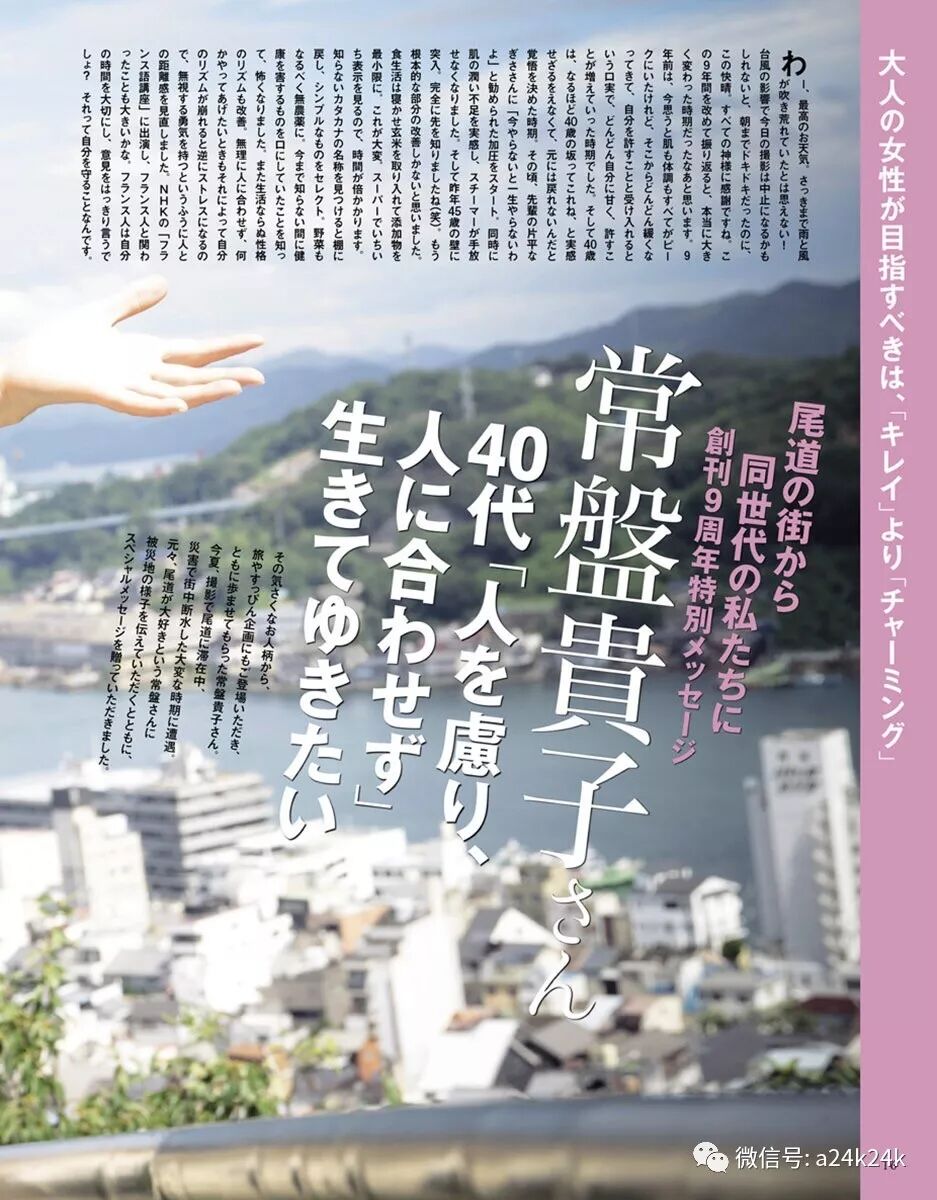 霓虹杂志的创刊9周年请出了日剧女神常盘贵子来拍了一些内页,90后的孩子们可能都不知道她的名字了,在当年还没那么多剧追的年代,日剧女神几乎霸占了日本大部分的偶像剧。
