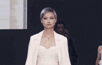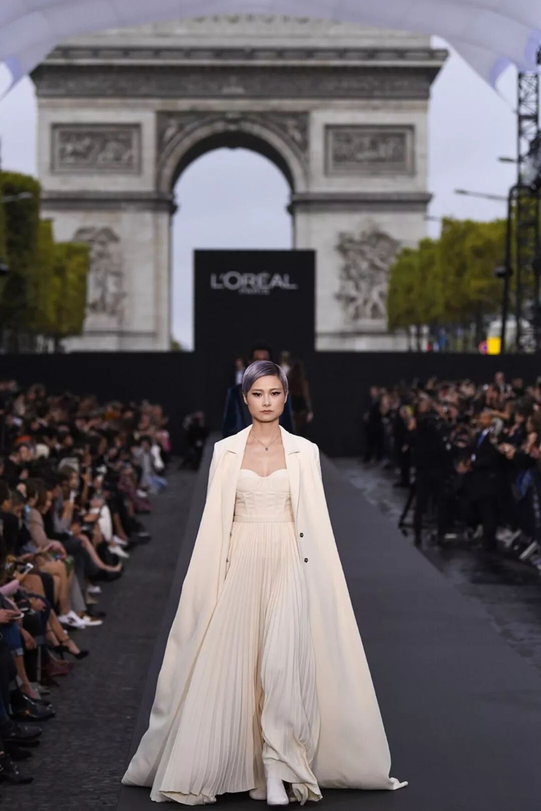 看看她去年给欧莱雅走的秀,一身全白的长袍内搭长裙,又压个子又拖沓,难度不低,但她很好地hold住了。▼