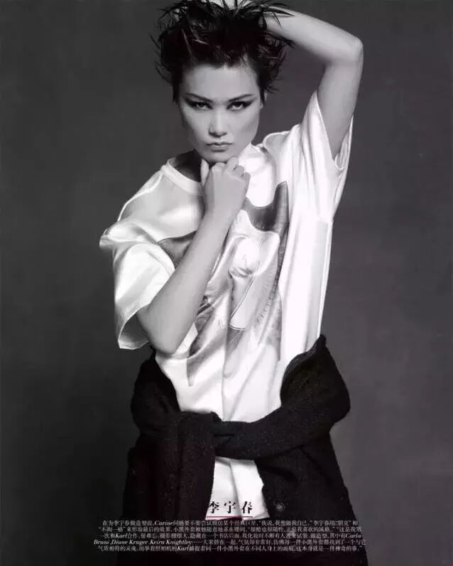 春春上过的杂志数不清。向来“挑剔”的意大利版《Vogue》,2013年才第一次用中国模特拍封面。同年,李宇春成为第一个登上意版《Vogue》的中国女歌手,还占据了整整十页的专访版面。▼