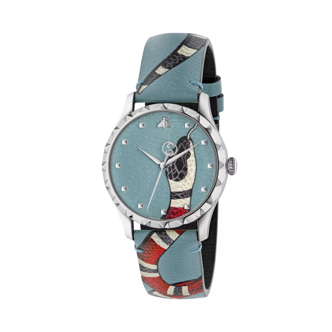 G-Timeless系列腕表,灵感来自Gucci花园,上面有Gucci代表性的珊瑚蛇标志,危险的美丽~▼