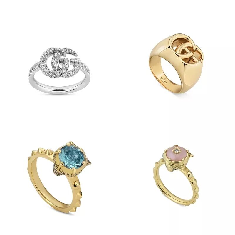 GG Running系列的戒指也充满了辨识度,大大的GG logo,很能为皮肤提亮。带有粉色欧珀石和海蓝宝石的戒指来自Le Marché des Merveilles系列,华丽的复古感。▼