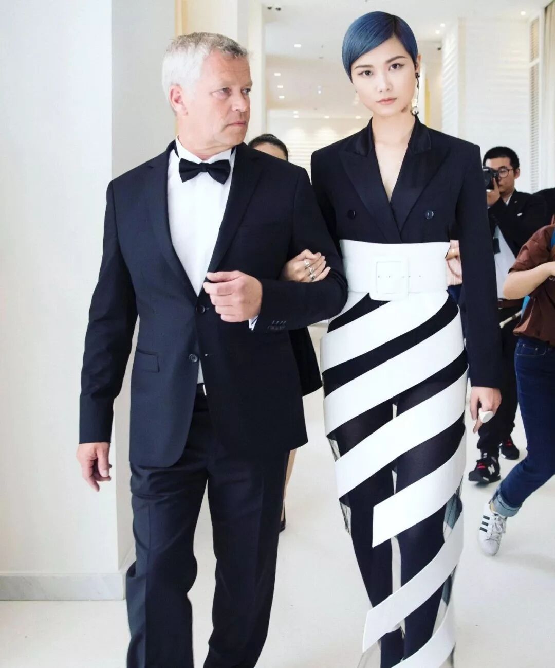 这次去她去戛纳就顶着上次演唱会的紫色头发,好几套造型都很好看。帅美中多了几分优雅。穿橙色皮裤去走红毯,应该也只有李宇春敢吧。▼