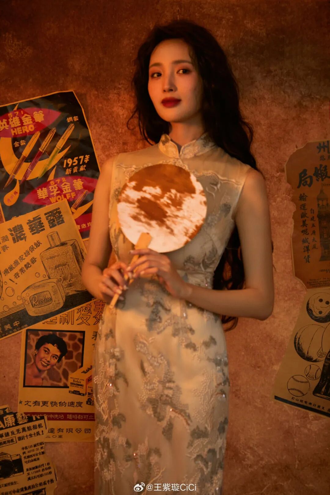 可以像野蔷薇一样热情外放的王紫璇,拥有如海藻般的浓密发量,以羊毛卷造型出镜时,仿佛复古画报上走出来的美人,呈现出迷人的松弛感。