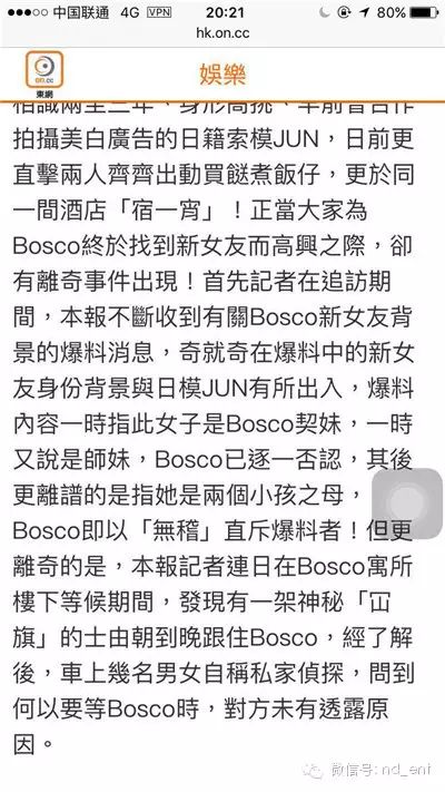 黄宗泽终认恋上长腿日模Jun,但跟踪他的私家侦探到底是... 南都全娱乐 港台男星 2016-03-14 22:05:44 470 创作不易,用心坚持,欢迎请BaGua喝几杯爱心咖啡!打赏并支持本文 打赏并删除本文 点击“南都全娱乐”跟我做朋友!《警犬巴打》剧组最近的喜事真的是很多咧!首先是剧中的女主角——一向低调的嘉欣BB突然宣布自己结婚了,还有了爱的结晶~然后这边厢男主角“巴打”黄宗泽也被港媒拍到和一名日籍女模特情侣装现身超市买菜玩“煮饭仔”。两个人都戴着黑色的针织帽和口罩。对于这个,娱乐君想说的是,感觉这样包得严严实实的走在人群里更显眼更招狗仔好吗?Bosco就很机警,立刻发现了记者在偷拍,女方就吓得落荒而逃。这名女子是谁呢?别急,娱乐君现在就来给你们起起新Bo嫂的底~Bosco身边这位身材高挑的长腿新欢名叫Jun,身高1米74,2005年以模特儿的身份在日本出道。她和Bosco是因为一个合作美白食品广告认识的,至今两人已认识两至三年了。她过去也曾为多个大型品牌拍摄电视及硬照广告,曾经合作的品牌包括TOYOTA、SONY及森永乳业等,还上过著名时尚杂志《FASHION NEWS》《装苑》和《ELLE GIRL》等。此外,Jun曾参与大型时装秀东京Girls Collection,并为多个时装品牌担任天桥模特儿,经验丰富。2005年的时候,她还出演了女歌手幸田来未的单曲《you》、《feel》、《Lie》及《Someday》的MV。在这里娱乐君要贴温馨提示了,没看清楚Jun样子的小伙伴们,此时可以去翻翻MV看个清楚啦~数了一轮下来,其实新Bo嫂的来头也不小啦,据说也勉强算得上是“广告宠儿”。↓↓不仅被拍到超市买菜玩“煮饭仔”,两人还被拍到入住同一酒店玩“宿一宵”呢~对此,护Jun心切的Bosco就解释说:“刚好我家装修,所以我就在那家酒店住,人家(指Jun)来香港旅行,又问我住那家酒店好,我就推荐顺便帮她订咯!我们是分房睡的,她也有给回房费给我的。”咦,好像又很有道理的样子?By the way,这位新Bo嫂被爆已经是两个孩子的妈妈了,对此,Bocos严肃地否认啦!↓↓这次和日模新欢逛街被拍,Bosco就有点不爽了,抱怨记者“阻住晒”。他表示,本来打算逛完超市去喝下午茶的,没想到记者们突然出现,而Jun不太熟悉香港娱乐圈,因此被吓到了,“气死啦!你们都不给时间我们互相了解,阻碍我认识女生啦!”到底还是人逢喜事精神爽,没过几天Bosco风骚开工的时候,面对记者们还是态度很好滴~在记者的追问下,他透露与Jun平日里用英文交流,当然他也会考虑为了Jun学习一下日文。至于互相是否有好感,他就说:“你们不要这样讲啦,到时交不到货要被你们说,交到货又要被你们说!”但是最后还是给出肯定的回答说“Ok啦”,疑似默认了这段跨国新恋情。在这里娱乐君要插播一个小八卦,狗仔在黄宗泽楼下等候追访其新恋情的期间,竟然发现他所住的那栋住宅楼下有一架神秘“冚旗”的士从早到晚跟随其出入,车上有数名男女对方自称是私家侦探,被问到为何要等黄宗泽的时候,对方并未透露消息。Bosco闻言也是十分愕然,并称“有点害怕”,但是至于为什么会惹上私家侦探,Bosco则表示不清楚。不过据说他后来并没有真的去留意这辆车以及车上的人物,完全不当一回事儿,还真是一个心很大的耿直boy呢!好了插播完毕,要回归正题噜!众所周知,胡杏儿是黄宗泽的前女友,前阵子杏儿结婚的时候,黄宗泽微博评论底下满满的“你快去抢婚!”。但是,Bosco可是一个出了名的花心鬼呢,不过“颜即正义”,所以即便花心,我们还是愿意接受我们的男神。现在,就让娱乐君给大家扒扒你们曾经的情敌、Bosco的前女友们吧~首先最出名的最多人知道的肯定是胡杏儿咯,两人因合作2005年红遍大街的《我的野蛮奶奶》而相恋,在TVB陪伴着一路走来,但无奈昔日的“互顶宣言”也终于顶不住了,八年的感情画上了句号。当时传闻胡杏儿忍痛说分手是因为终于忍受不了黄宗泽的花心与绯闻,对此杏儿因为情绪激动一直没回应,而Bosco坚称”没有第三者“↓↓现在女方已嫁作人妇做幸福少奶奶,男方也觅得自己的新欢,娱乐君就不好对这段旧情过多评论了,毕竟不在乎天长地久,只在乎曾经拥有,大家都幸福就好~坊间有传杏儿与Bosco的八年情断是因为身材傲人的柳岩,两人因合作《面包树上的女人》中的吻戏而被传出绯闻。娱乐君很想知道去年播这部剧的时候Bosco心里作何感想~但是这段感情是假的啦,这个在刚刚提及杏儿那部分里Bosco已经当面澄清啦,是炒作!是炒作!是炒作!不过下面这个倒是真的。与胡杏儿分手后,Bosco恋上年纪比他大的杨峥,谈了一场姐弟恋,不仅手牵手在西贡逛街,还喂食曲奇,令恋情曝光。据悉,虽然Bosco当时未松口承认杨峥的Bosco嫂的身份,但是杨峥却另有途径“宣示主权”,在出席活动后,她驾驶着黄宗泽的一辆仿古车返回其鲤景湾寓所,以此变相宣示身份。当时还流出了二人的接吻照,这画风娱乐君表示“我接受唔到咯”。不过这段恋情21天就玩完了,原因是女方拒绝生儿育女。不可惜啦,杨峥也不是什么纯良Girl,港媒封她“专勾人夫”。还有一个比较少人知道的前女友是甄咏珊,长这样↓↓甄咏珊是前香港性感组合Freeze的成员,2006年参选亚姐时,自爆入行前曾与黄宗泽拍拖,在2013年录制《亚姐百人》时,更公开多谢黄宗泽当时承认与她的一段情。传过绯闻的还有倪晨曦,2005年多伦多华裔小姐冠军。↓↓在当年选华姐的时候和Bosco有过合影,回