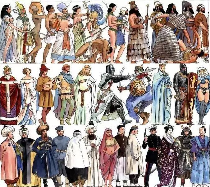 原始人类出现—学会用火—发明农业—城市国家
