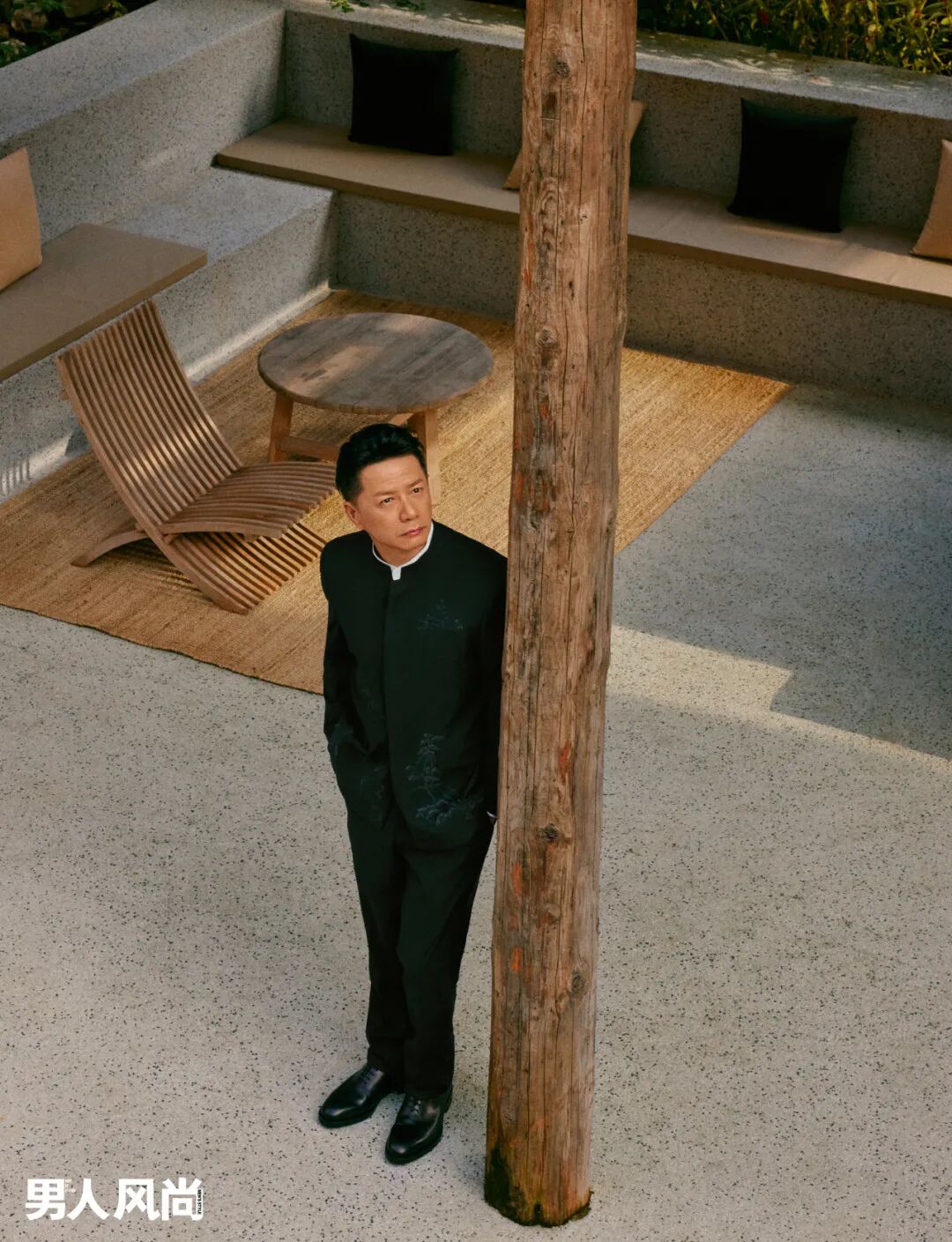 这次拍摄是在北京城郊的山里,风物质朴,草木漫野。段奕宏刚结束话剧《四世同堂》的上一轮巡演。城郊的夜格外静谧,脱离钢铁丛林包裹的城市生活,可以看见稀疏的星星,也能听见蚊虫聚集的响动。他还留心看了看几个院落之间的距离,布置上有何差异:“四周都是山,里面设计挺有调性,适合休假小住几天。”