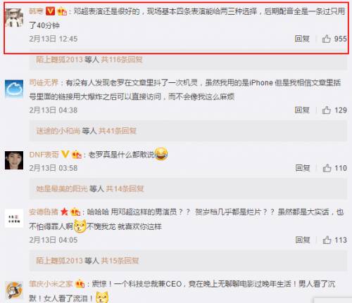 对于罗永浩质疑邓超的演技,韩寒则表示,邓超表演还是很好的,现场基本四条表演能给两三种选择,后期配音全是一条过只用了40分钟。
